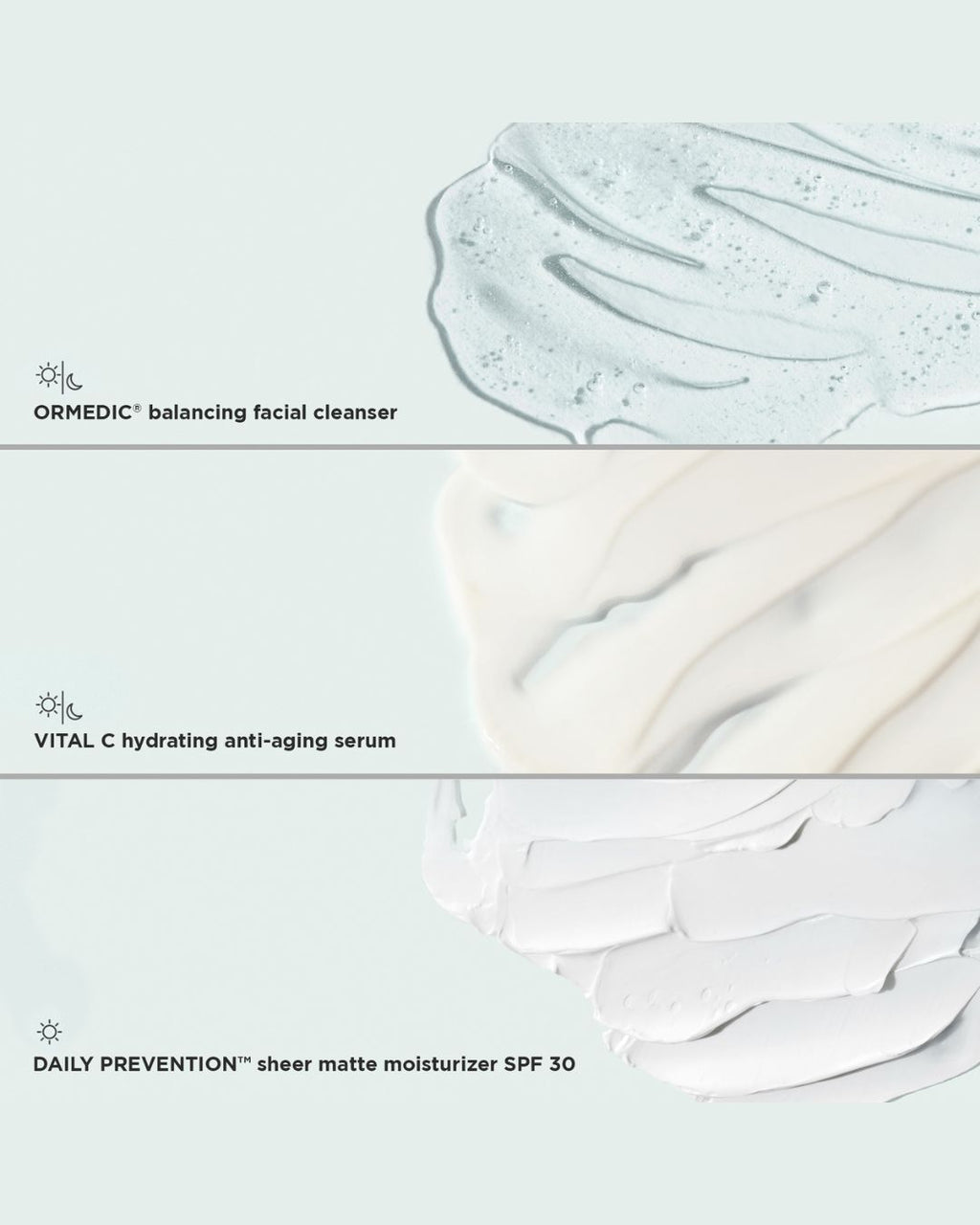 Reiseset zum Kennen-, Liebenlernen und mitnehmen! Die optimalen Reisegrößen eignen sich für einen Urlaub oder zum Ausprobieren neuer Produkte. Enthalten sind 3 Spezialgrößen: ORMEDIC balancing facial cleanser 50 ml, DAILY PREVENTION sheer matte moisturizer SPF30 28 g und VITAL C hydrating anti-aging serum 15 ml.