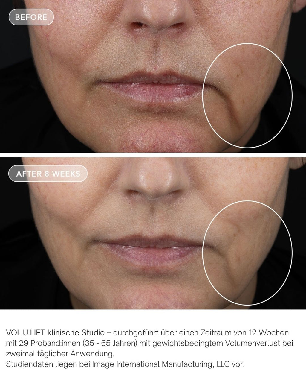 In einer 12-wöchigen klinischen Studie mit 29 Proband:innen mit gewichtsbedingtem Volumenverlust zeigte VOL.U.LIFT™ beeindruckende Ergebnisse bei zweimal täglicher Anwendung: